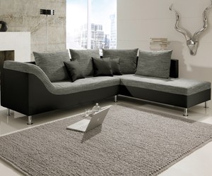 Ecksofa Philip Wohnlandschaft Couch Sofa mit Ottomane rechts schwarz Stoff grau | eBay