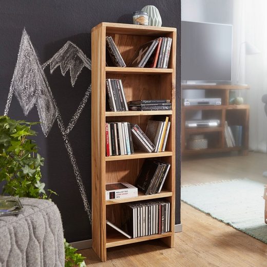 CD Regal MUMBAI Massivholz Standregal 90 cm hoch CD Aufbewahrung 5 Fächer Bücherregal ...