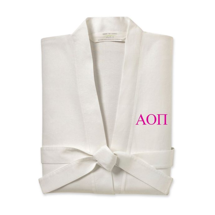 Under The Canopy® Alpha Omicron Pi Greek Sorority Kimono Robe in Ivory/Strawberry | Bed Bath ...