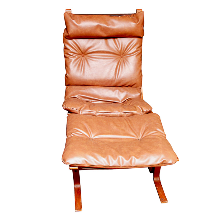 Danish Modern Teak and Leather Lounge Chair and Ottoman : EBTH
